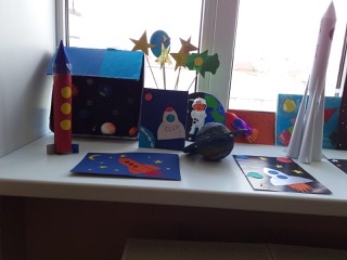 Сегодня в День космонавтики в школе прошли классные часы и выставки детских работ