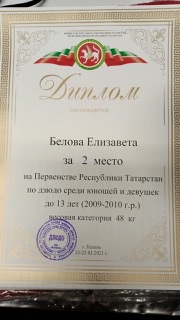 Сегодня ученица 6б класса хорошо выступила на Первенстве РТ по дзюдо среди девочек и заняла 2 место. Теперь поедет на Российские соревнования.