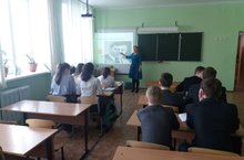 Представитель социально-гуманитарного техникума выступил перед учениками 8-9 классов по вопросам профессиональной ориентации, об условияхи обучения в техникуме.