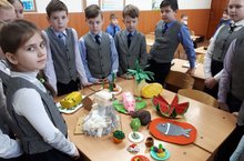Учащиеся 4В класса подготовили макеты "Блюда времен Петра I". Ребята изучили кухню времен знаменитого императора и сделали сообщения о полезной пище
