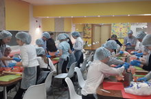 17 ноября в нашем школьном ресторане прошел кулинарный мастер-класс для учащихся. Ученики 6 А класса под руководством шеф-повара самостоятельно приготовили салат «Цезарь» с классическим соусом на основе оливкового масла и яблочный штрудель с мороженым и вишневым топпингом.