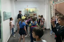 24 июня. Ребята пришкольного лагеря "Солнышко" посетили Центр внешкольной работы Авиастроительного района на ул.Лядова 13 А. Была проведена экскурсия по выставке "Путь к Победе". Ребята вместе с экскурсоводом вспомнили как тяжело досталась Победа в Великой Отечественной войне нашей стране.