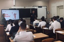 Выступление ведущего специалиста отдела по обеспечению координации и взаимодействия подразделения социальной сферы Алтыновой Оксаны Васильевны и ведущего специалиста отдела профилактики ГБУ БДД Газизовой Айгуль Зуфаровны в рамках классного часа "Город безопасного детства"