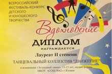 Поздравляем школьный хореографический ансамбль «Движение», ставшего лауреатом Всероссийского фестиваля-конкурса детского и юношеского творчества «Вдохновение»!