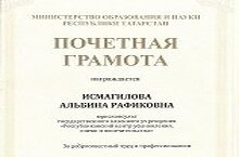 Почетной грамотой Министерства образования и науки РТ награждена юрисконсульт Исмагилова