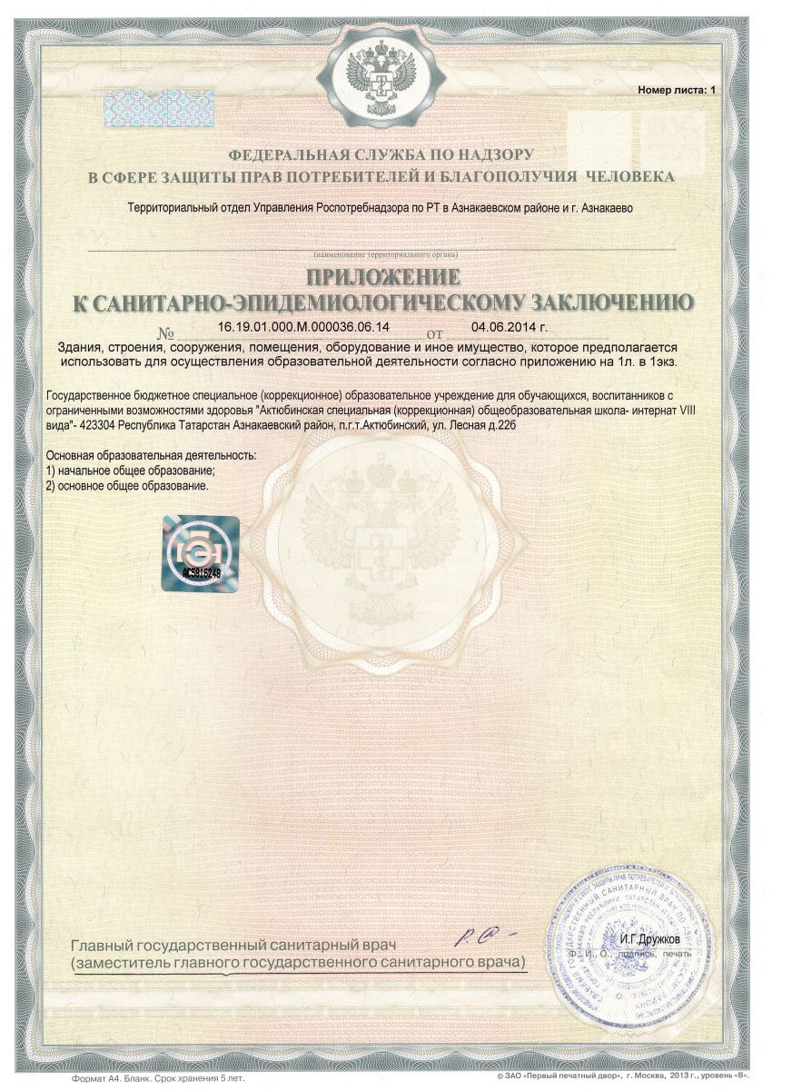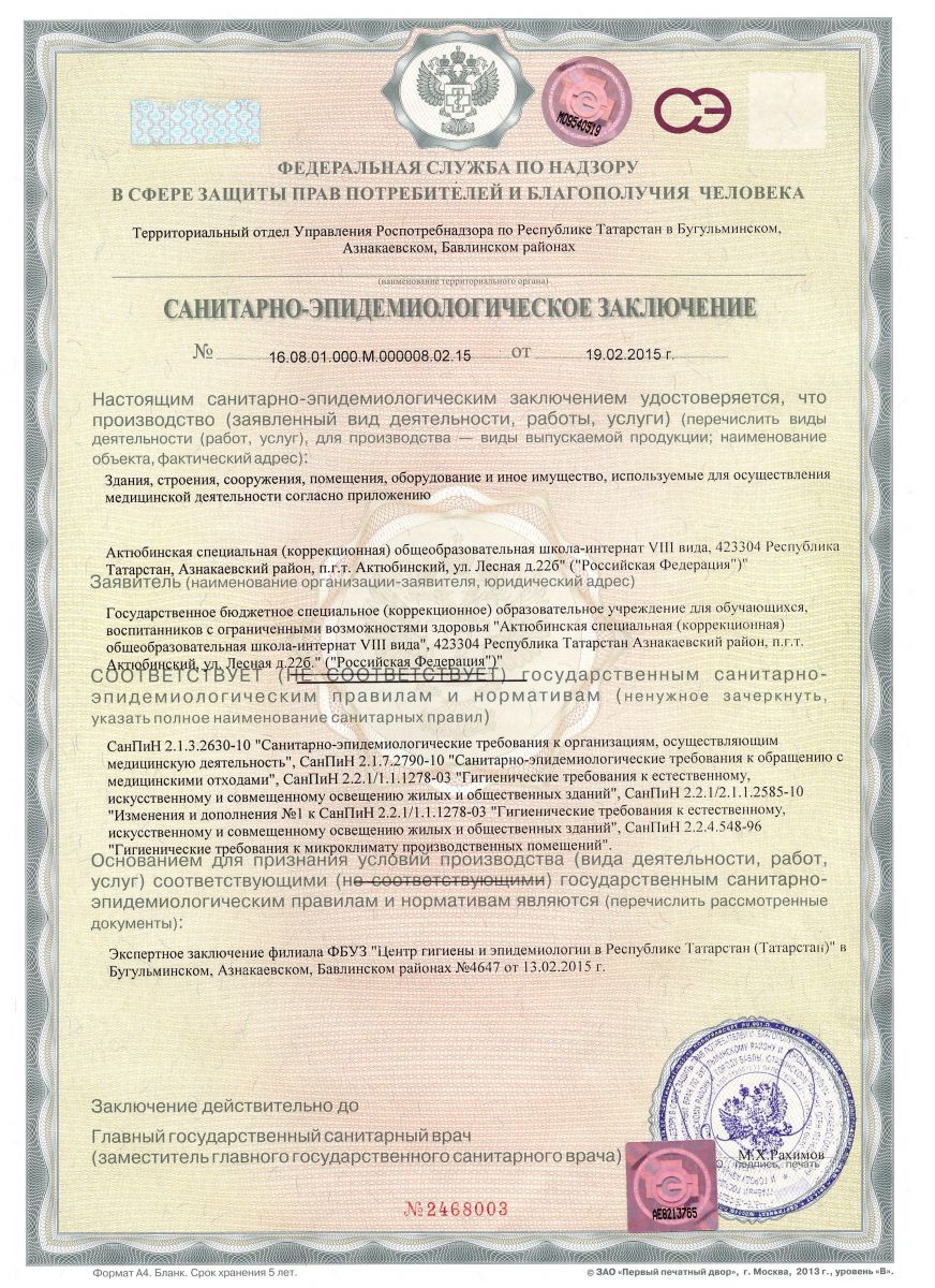 Санитарно-эпидимиологическое заключение.приложение 2.