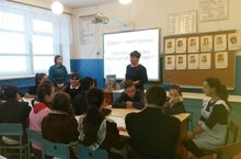 17 нче февральдә 9а-б сыйныфы (татар төркеме)укучылары белән татар теле һәм әдәбияты укытучысы Вәлиева З.Н., “Үз телемдә исәнләшү җаныма тынычлык, күңелемә рәхәтлек,вөҗданыма сафлык бирә” дигән тема астында КТУ дәресе үткәрде. Презентация материалына нигезләнгән әңгәмә җанлы рәвештә алып барылды. -