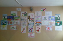 В школе была организована выставка рисунков учащихся, посвященная празднованию 70-летия Великой Победы