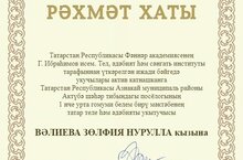 Татарстан Республикасы Фәннәр Академиясенең Г.Ибраһимов исем. Тел, әдәбият һәм сәнгать институты (ТӘҺСИ) китап укырга яратучы балалар арасындагы бәйгегә нәтиҗә ясады. Безнең мәктәптән Хисамова Элиана (7-а сыйныфы укучысы) һәм Сибгатуллина Алия (9-б сыйныфы укучысы) катнашып, бүләкләргә лаек булдылар. Мин укучыларым белән горурланам!