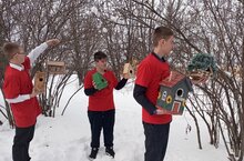 Учащиеся школы совместно с юнармейским отрядом смастерили кормушки, приготовили угощения для пернатых и покормили птиц.