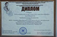 Подведены итоги III Республиканского конкурса чтецов «Поэт-герой Муса Джалиль». Победителем стала учащаяся 9а класса Гарайшина Самира. Поздравляем победителя и выражаем благодарность учителю татарского языка и литерартуры Валиевой З.Н.