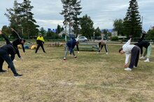 Куркынычсызлык айлыгы кысаларында 11 нче сыйныф укучылары өчен физкультура укытучысы Соколов Сергей Владимирович саф һавада зарядка ясады.