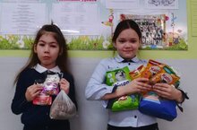 Ученицы 2А класса Кравченко Даяна и Рахманова Самира участвуют в Благотворительной акции по сбору кормов, лекарств и бытовых предметов для бездомных животных