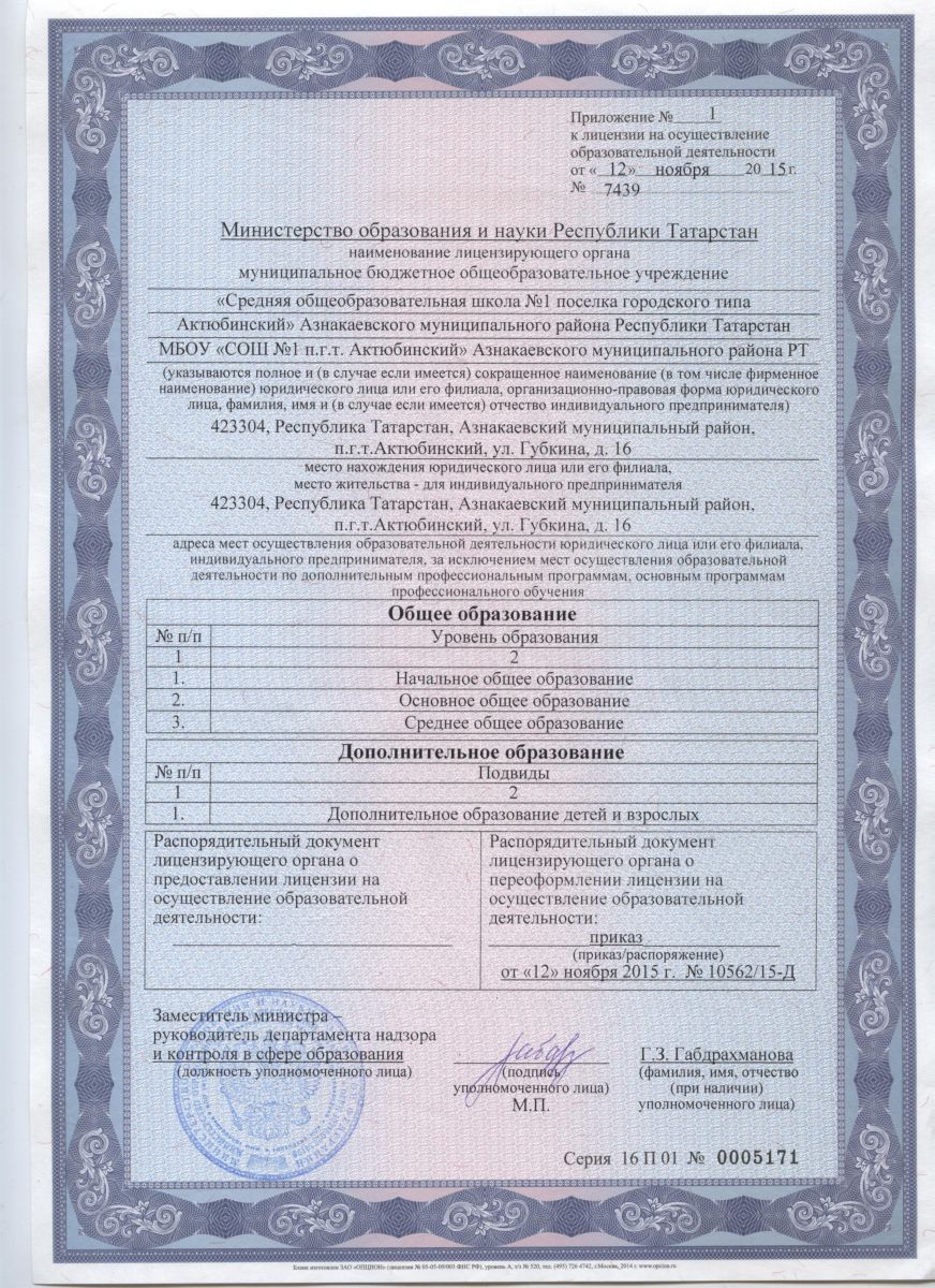 | Короткое название: | МБОУ "СОШ 1 пгт.Актюбинский" Азнакаевского муниципального района РТ |