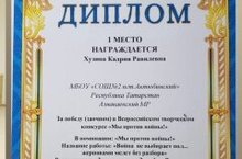 Героями не рождаются,героями становятся. Все начинается со школьной скамьи. "Мы против войны!" Участники и победители конкурса ученица 11 класса Хузина Кадрия и ученик 9 класса Ишбердин Риналь-герои дня. Спасибо ребята, за неформальный ваш патриотизм! -