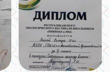 Поздравляем ученицу 10А класса Мигай Владу, ставшую ПРИЗЁРОМ республиканского экологического фестиваля школьников «Природа и мы» в конкурсе «Сохраним природу вместе» г. Нижнекамск. Желаем дальнейших успехов и больших побед!