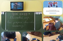 В 7-8 классах прошел урок цифры "Квантовый мир". Посмотрели видеолекцию "Квантовый мир: как устроен квантовый компьютер", прошли тест, получили сертификаты.