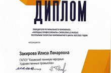 Выпускница нашей школы Закирова Илиза стала победителем регионального чемпионата "Молодые чемпионаты" (WORLDSKILS RUSSIA) Республики Татарстан Чемпионатного цикла 2021/2022.