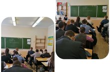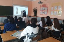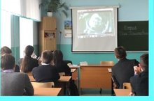 Просмотр документального фильма в 9 Б классе про полёт Ю.Гагарина в космос.