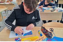 Сегодня на уроке изобразительного искусства учащиеся 6 "Б" класса рисовали пейзажи и натюрморты в технике коллажа.