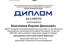 Поздравляем призёра Республиканского конкурса «Юные техники XXI века»! в номинации «Техническое конструирование» Ключникова Кирилла, ученика 7Б класса.