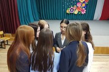 Студентка КИУ г. Альметьевска (выпускница нашей школы), Юсупова Аделина ознакомила учащихся 6В класса с Российским движением детей и молодёжи «Движение первых» , рассказала об основных ценностях и направлениях молодежного движения. Провела интеллектуальную игру по финансовой грамотности «Pro бизнес».