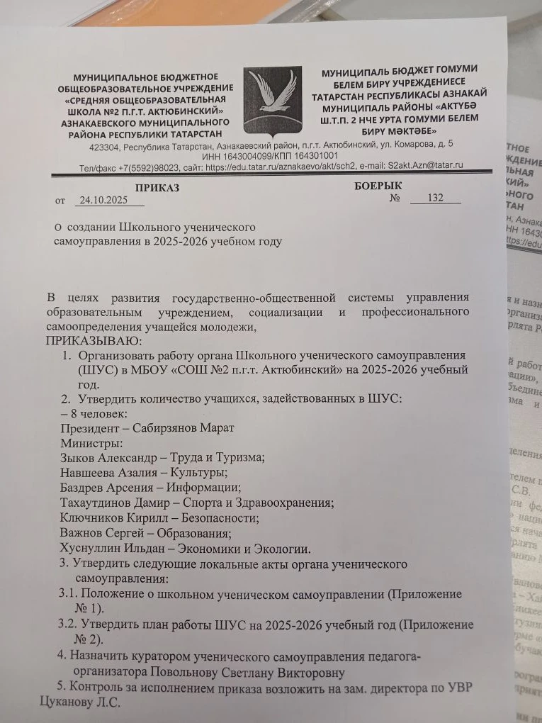 | Короткое название: | МБОУ "СОШ №2 п.г.т Актюбинский" Азнакаевского муниципального района РТ |