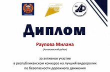 Ученица 4 класса Раупова Милана приняла участие в республиканском конкурсе по безопасности дорожного движения. Милана участник движения ЮИД. ЮИДовцы нашей школы ведут активную работу по профилактике детского дорожно-транспортного травматизма, пропагандируют правила дорожного движения.