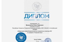 Ученик 10 класса Миняхметов Риназ стал призером по татарскому языку, приняв участие в межрегиональной научной олимпиаде, проводимой КФУ.