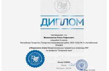 10 нчы сыйныф укучысы Минеяхметов Риназ КФу уздырган регионара фән олимпиадасында катнашып татар теленнән призер булды.