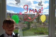 9 май бәйрәме алдыннан 2Б сыйныф укучылары "Җиңү тәрәзәләре" акциясендә катнаша.