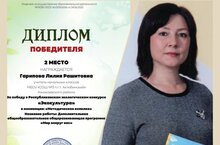 Поздравляем учителя начальных классов Гарипову Л. Р. - призёра Республиканского экологического конкурса "Экокультура" в номинации: "Методическая копилка".