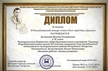 Шагыйрьнең тууына 118 ел тулуга багышланган «Шагыйрь - герой Муса Җәлил» III Республика укучылар конкурсына йомгак ясалды. 2 Б сыйныф укучысы Хөсәенова Малика II дәрәҗә диплом белән бүләкләнде! Бик яхшы! Котлыйбыз! Алга таба җиңүләр телибез!
