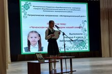 Хәрби-патриотик айлык кысаларында 4 сыйныф укучысы Зәйнетдинова Айзия «Чечня Минем гаиләмдә " гаиләсе белән тыгыз бәйләнгән проектын яклады.