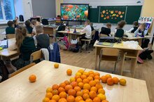 С наступающим НОВЫМ ГОДОМ!Мандариннар исе безгә иң тылсымлы һәм әкияттәге бәйрәмнең якынлашуын искә ала һәм тиздән Яңа ел киләчәген искә төшерә.Бүген, 27 декабрьдә, 2 нче сыйныф параллелендә "Мандарин көне". Барлык дәресләрдә дә балалар мандарин биремнәрен хәл итәләр, танып белү фильмын карыйлар, «Мандарин» җырларын җырлыйлар, моның өчен мандаринкалар алалар һәм ашыйлар. Ә Мандарин көне ахырында Чебурашкада кунакта булдылар, мандарин конкурсларында уйнадылар.Киләсе Яңа ел белән!