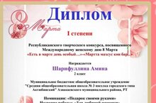 Ученица 2 класса Шарифуллина Амина стала победителем Республиканского творческого конкурса "Есть в марте день особый...".