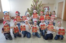 Яңа ел алдыннан мәктәп активистлары әтиләре Ватаныбызны якларга киткән башлангыч сыйныф укучыларын котладылар.