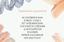 Ждём всех родителей будущих первоклассников на организационное собрание, посвящённое началу работы «Школа будущего первоклассника».