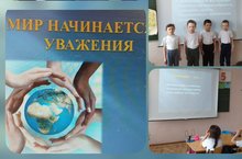 1 нче сыйныфта "Дөнья ихтирамдан башлана"дип исемләнгән әңгәмә үтте. Бер-береңә хөрмәт планетабызда кешеләр арасында дустанә мөнәсәбәтләр һәм тынычлык гарантиясе булып тора.
