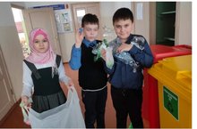 3 нче сыйныф укучысы Жилин Ярослав "Пластик шешәгә-икенче тормыш"акциясендә катнаша.Акциянең максаты: экологик культура формалаштыру һәм калдыклар санын киметү һәм аларны кабат куллану кирәклеге турында аңлау.