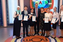 Сегодня учащиеся 8-9 классов участвовали в интеллектуальной игре "Тамчы шоу" на телеканале Шаян ТВ. -