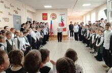 Сегодня в нашей школе прошла традиционная еженедельная линейка, которая началась с поднятия флагов Российской Федерации, а также исполнения гимнов.
