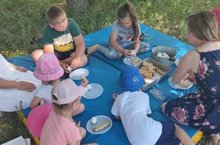 Шимбә, иң кызыклы һәм бай көн ."Улыбка" мәктәп яны лагерында ул бик кыска түгел. "Туристлар" җирдә ориентлашу буенча дәрес-уен.Табигатьтә иртәнге аш.Әңгәмә "Этика һәм этикет"."Өстәл артында үз-үзеңне тоту культурасы"практик өлеше