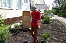 Учащиеся трудового лагеря старательно облагораживают территорию пришкольного участка.