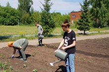 Трудовой лагерь "Зелёная планета" работает на приусадебном участке.