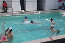 Эссе көннәрдән соң җылы суга чуму рәхәт. Мәктәп яны лагере бассейнда.