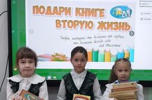 Ученицы 1 класса Харисова Азалия, Шаяхметова Амелия, Фабричникова Арина участвуют в акции "Подари книге вторую жизнь".