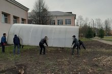 Мәктәп яны участогын төзекләндерүдә ата-аналарның ярдәме зур. Бу юлы алар теплицаны яңа урынга күчергәннәр.