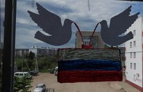 3 һәм 5 нче сыйныф укучылары Хуҗиналар Айгөл һәм Азалия Россия көненә тәрәзәләрен бизәделәр.