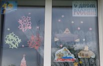 3 нче сыйныф укучысы Зиннәтуллин Рамазан Россия көненә тәрәзәләрне бизәде.